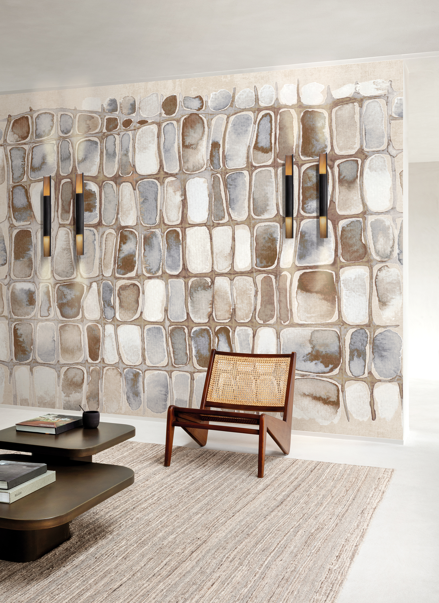 Papel de parede da Masureel, marca belga referência mundial em design, arte, qualidade e sustentabilidade. Produzido em base non woven de alta gramatura, oferece estabilidade, durabilidade e um acabamento impecável, com cores e texturas de alta precisão.